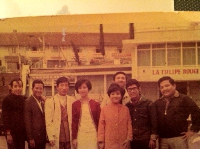 từ trái: Elvis Phương, Ngọc Chánh, Pat Lâm và vợ, Ngọc Mỹ, Duy Khiêm, Quốc Hùng, Hoàng Liêm
