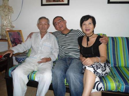 Ảnh mới nhất chụp tại nơi tạm trú của nhạc sĩ Thanh Bình ngày 21 tháng 8 năm 2012. Từ trái sang phải: Nhạc sĩ Thanh Bình, Trịnh Khánh Thiêng, nghệ sĩ Giang Kim