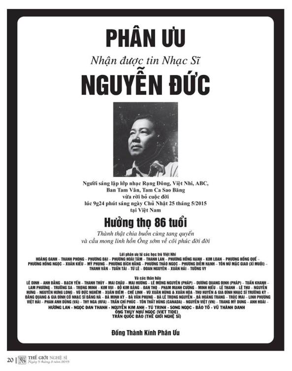 Phân Ưu cùng gia đình Nhạc Sĩ Nguyễn Đức