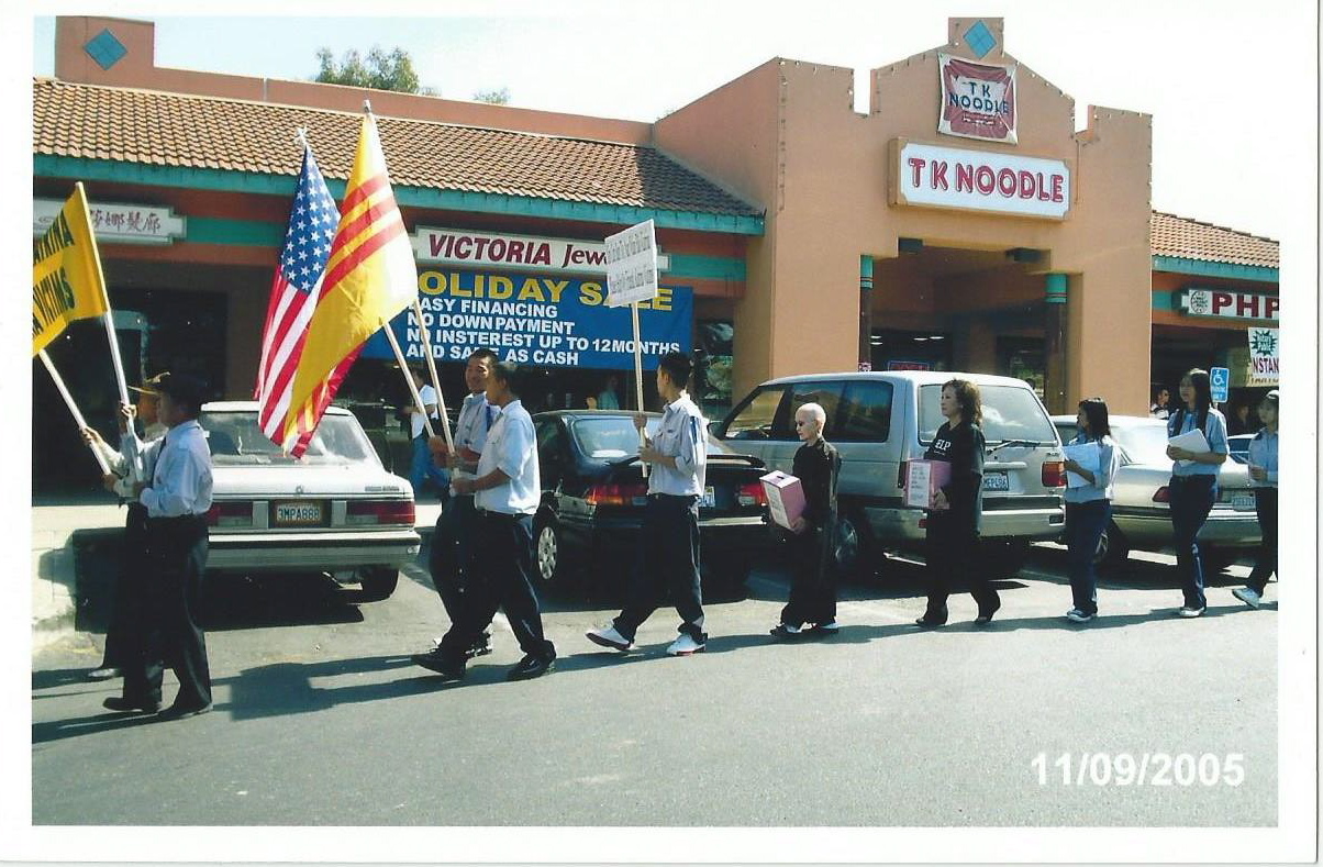 Thanh Thúy đã cùng gia đình Phật tử vận động cứu trợ tại các thương xá ở San Jose vào ngày 11 tháng 9 năm 2005