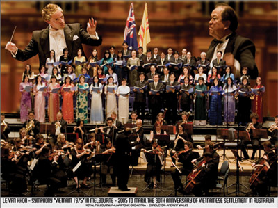 The Royal Melbourne Philharmonic Orchestra và ban Hợp Ca Cộng Ðồng Người Việt trong chương trình đánh dấu nãm ly hương thứ 30 của người Việt (Australia 2005).