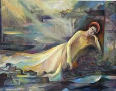 Hay trừu tượng, như trong bức hoạ “Tìm Về BờThiện Chân” …