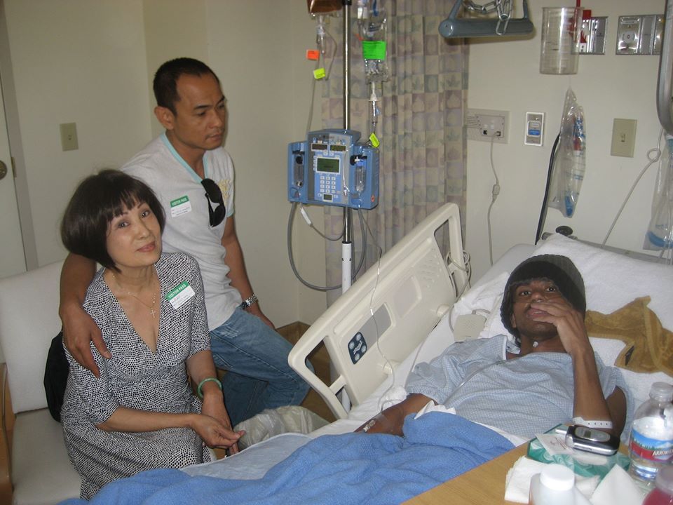 Chị Nga, Mạnh Thiện tại nhà thương ghé thăm Quốc Việt