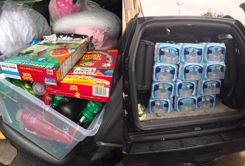 Nước và quần áo chăn gối được chở đến các nơi lánh nạn. Ảnh: Danny Nguyen.