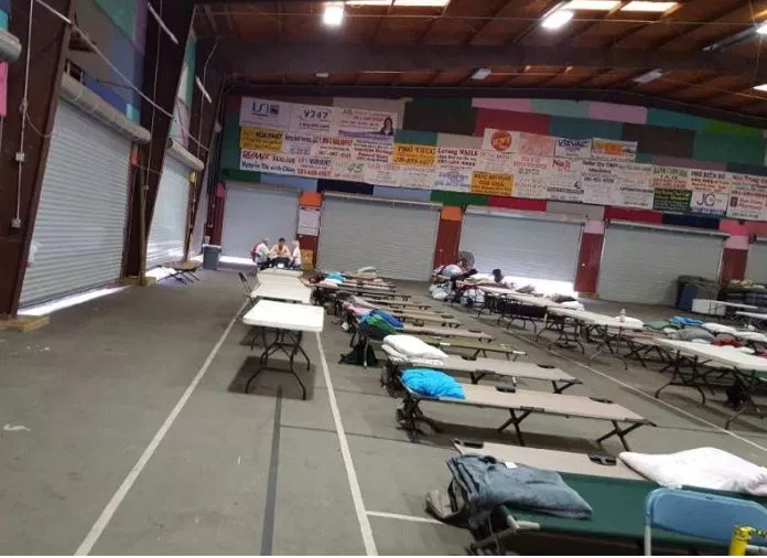 Một góc khu tạm trú tại giáo xứ Ðức Mẹ La Vang. (Hình: Ðằng-Giao/Người Việt)