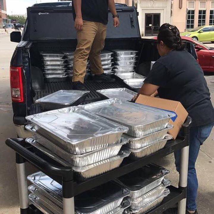 Nhà hàng Kim Sơn và cũng là nơi sản xuất nước cốt phở và chả giò Mama La Kitchen tuy cũng bị ngập nước nhưng vẫn cố gắng nấu 500 phần ăn cho các tình nguyện viên ,đồng thời cũng cung cấp thức ăn và chỗ nghĩ ngơi tạm thời cho cảnh sát và các lực lượng cứu trợ đang ngày đêm cứu người ra khỏi cơn lũ do bão Harvey.