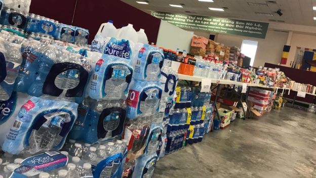 Lương thực do các nhà hảo tâm quyên góp cho Chùa Liên Hoa để hỗ trợ các nạn nhân bị ảnh hưởng nặng nề từ bão Harvey