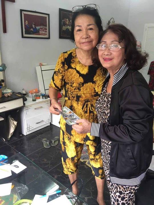 Ảnh trên là Thanh Thúy và Thanh Tú. Ảnh dưới là giấy biên nhận của Trang Bích Liễu đã lãnh quà 100$ của ca sĩ Thanh Thúy gửi về
