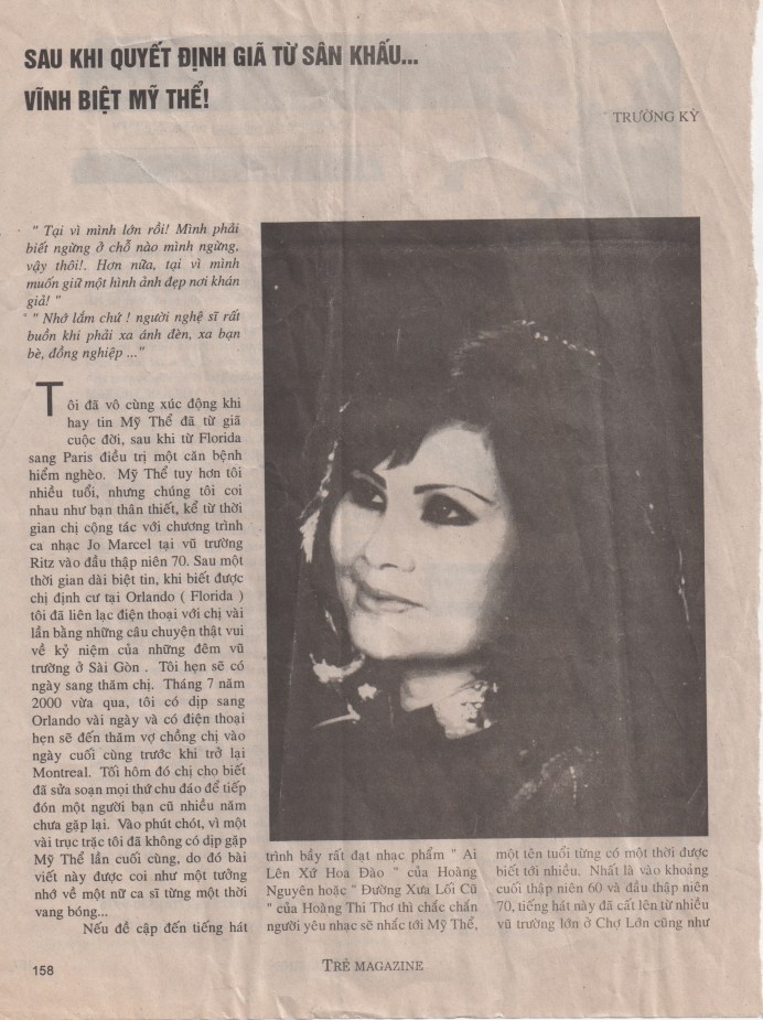 Sau khi quyết định giã từ sân khấu… vĩnh biệt Mỹ Thể! (Trường Kỳ)