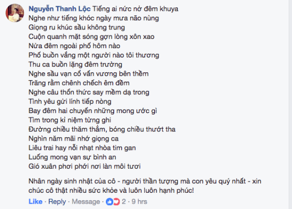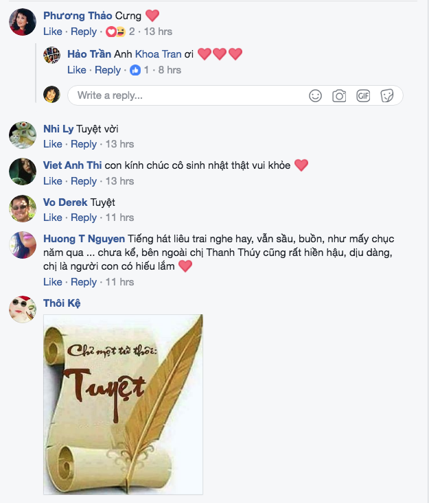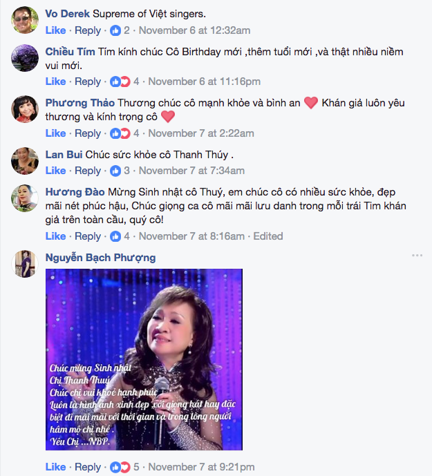 Và đây là lời chúc của Dan Lachance trên Hội những người yêu tiếng hát Thanh Thúy facebook: