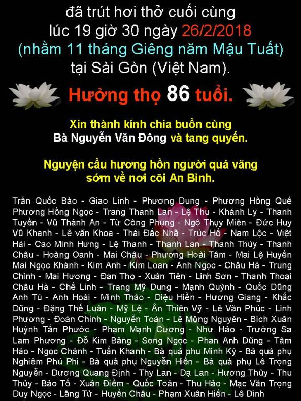 Phân Ưu cùng gia đình Nhạc Sĩ Nguyễn Văn Đông