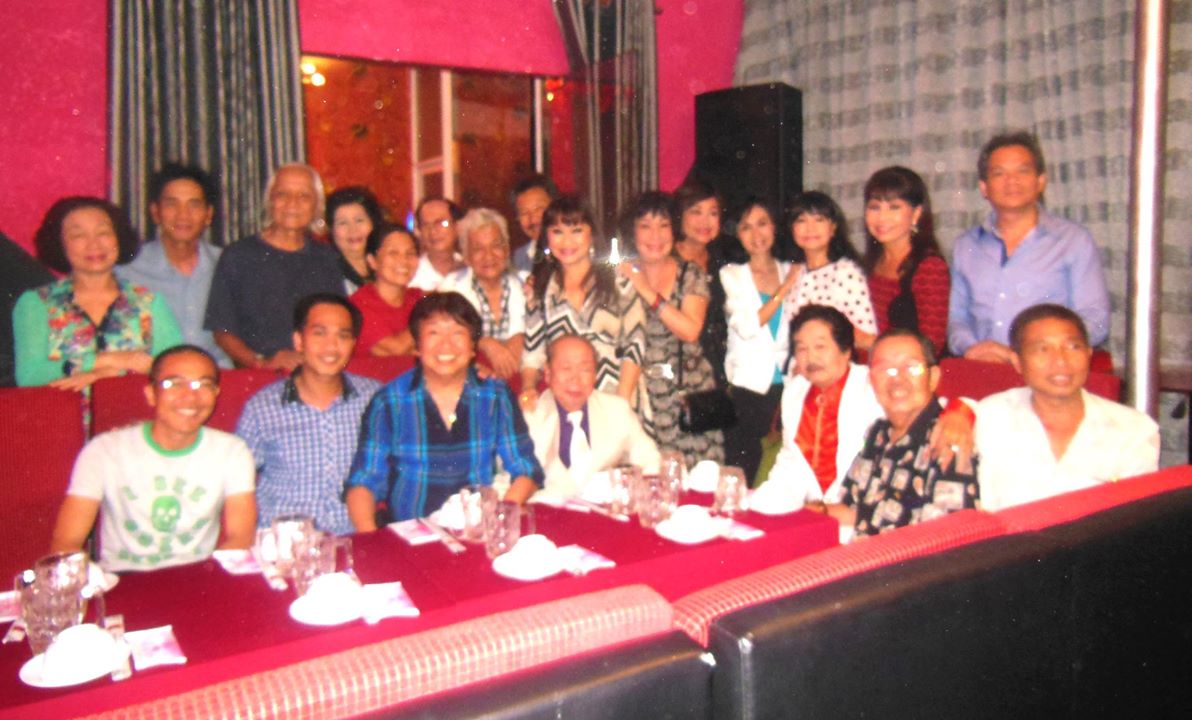 Buổi ăn hội ngộ ngày 12 tháng 5 năm 2014 tại Saigon với hàng đứng từ trái qua: Vợ chồng ngạc sĩ Mạnh Quỳnh (tác giả Gõ Cửa), nhạc sĩ Ngọc Sơn, vợ chồng nhạc sĩ Bảo Thu – Thanh Tâm, nhạc sĩ Mặc Thế Nhân, anh Toản (chồng ca sĩ Hương Lan), Trang Thanh Lan, Mỹ Chi, Kiều Phượng Loan, Trang Mỹ Dung, Kim Anh, Phương Hồng Quế, Michael và hàng ngồi: Phương Huy, Bảo Bảo, Trần Quốc Bảo, Tùng Lâm, Tòng Sơn, Thanh Hoài, Tám Bến Tre.