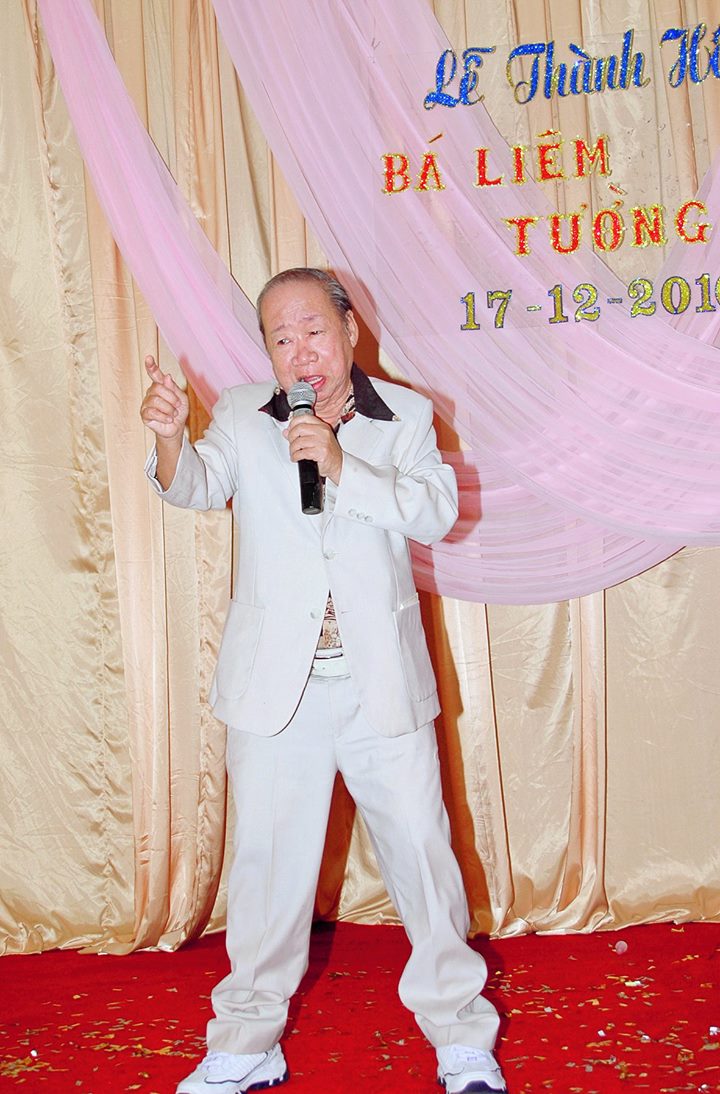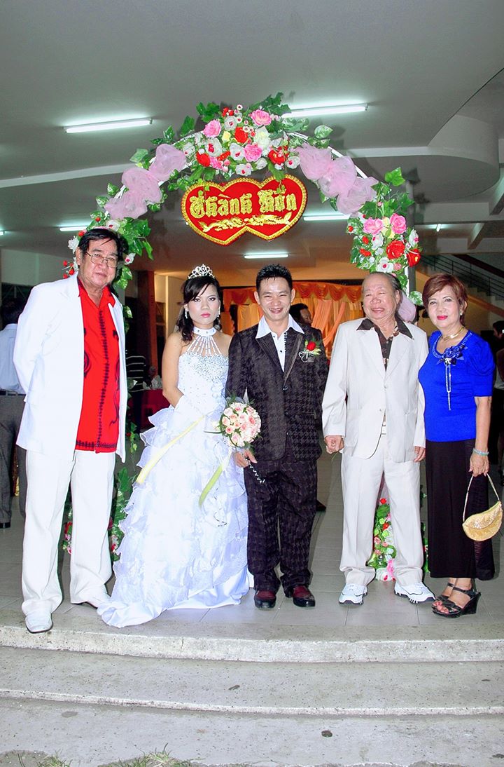 Tiệc cưới của Vũ Bá Liêm (con trai nghệ sĩ Giang Kim) ngày 17 tháng 12 năm 2010. Từ trái: Nghệ sĩ hài Quốc Bảo, cô dâu Tường Vy, chú rể Vũ Bá Liêm, danh hài Tùng Lâm, nghệ sĩ Giang Kim (Photo: Nguyễn Hữu Huy)