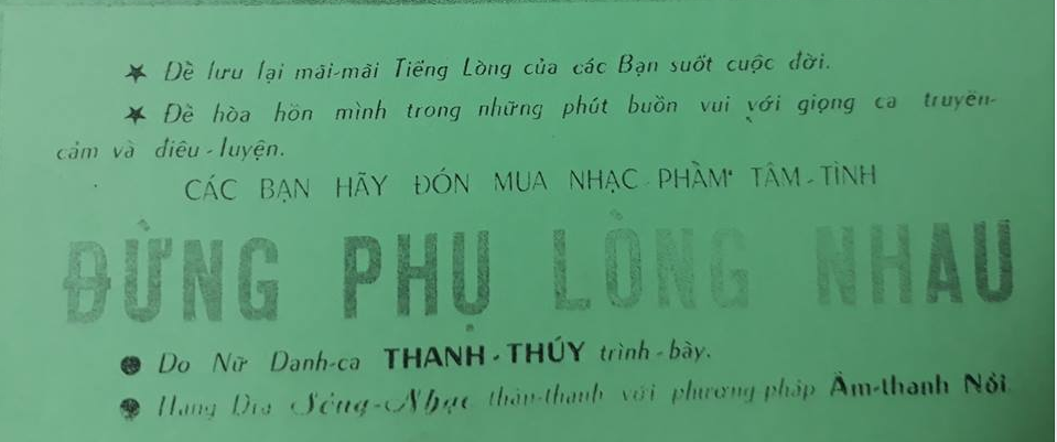 Bìa bài nhạc “Đừng Phụ Gì Nhau” một sáng tác của Lê Duyên và Trường Long (nguồn: Dương Thành Thông tặng)