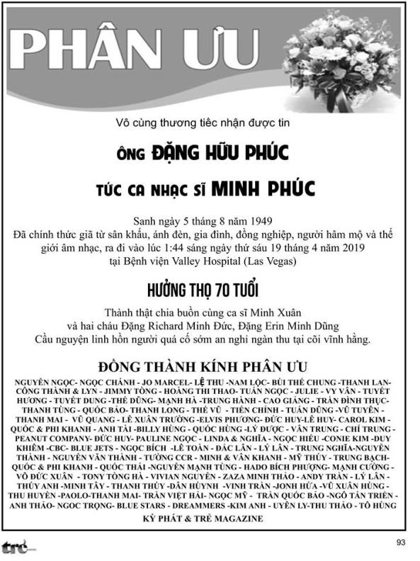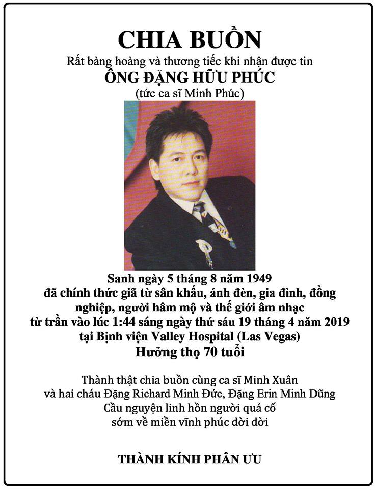 vừa từ trần vào ngày 19 tháng 4 năm 2019 tại Las Vegas, Hoa Kỳ
