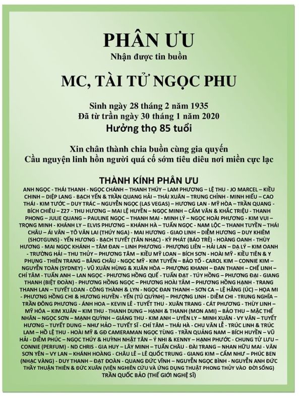Phân ưu cùng gia đình Nghệ Sĩ Ngọc Phu!