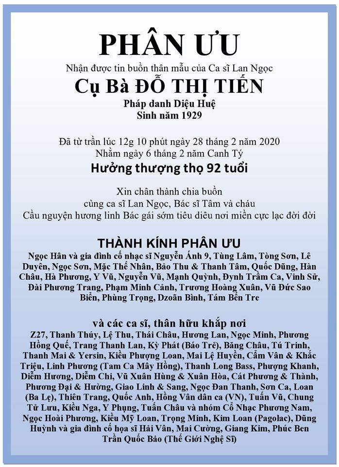 Phân Ưu cùng Ca Sĩ Lan Ngọc