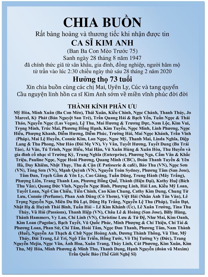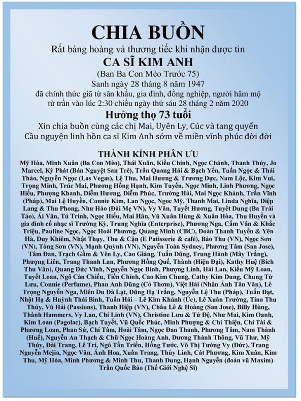 Chia buồn cùng gia đình Ca Sĩ Kim Anh!