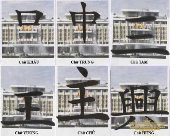 Ông áp dụng khoa chiết tự vào thiết kế mặt đứng để nhắc nhở những ai chủ trì tại đó phải có tài đức của một nhà lãnh đạo (chữ Vương, và chữ Tam – tượng trưng cho Nhân, Minh, và Võ đức), giữ vững chủ quyền đất nước (chữ Chủ), đảm bảo tự do ngôn luận của người dân (chữ Khẩu), trung với quốc dân (chữ Trung), và làm sao cho đất nước ngày càng hưng thịnh (chữ Hưng)…