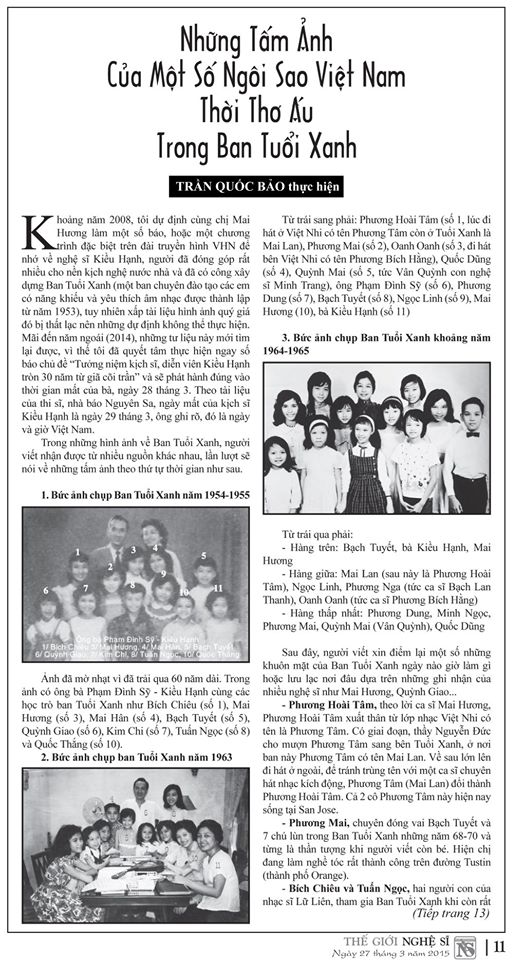 Những tấm ảnh của một số ngôi sao thời thơ ấu trong ban Tuổi Xanh (Trần Quốc Bảo)