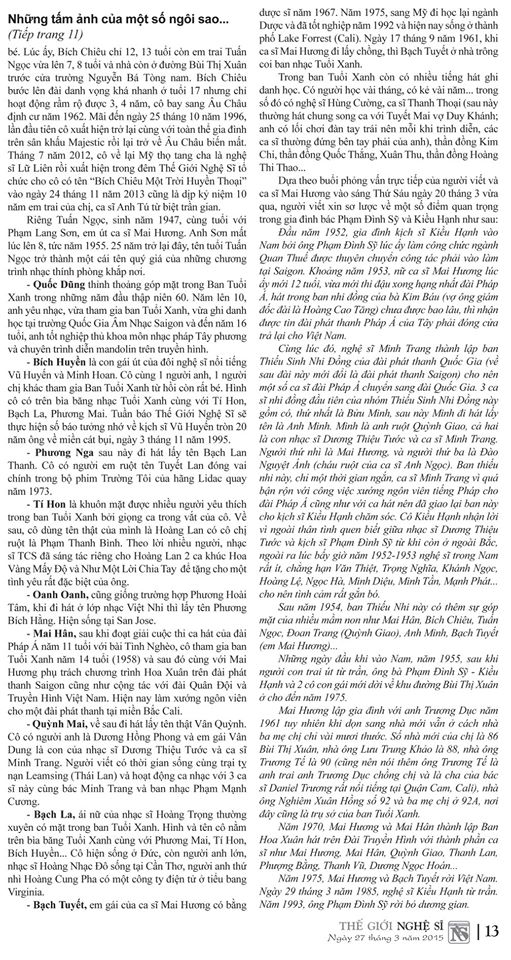 (bài viết của Trần Quốc Bảo đăng trong tuần báo Thế Giới Nghệ Sĩ số 7 phát hành ngày 27 tháng 3 năm 2015