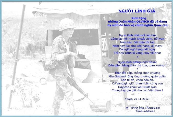 Trước hết xin giới thiệu cùng độc giả vài Thơ tranh về Người Lính Việt Nam Cộng Hòa.