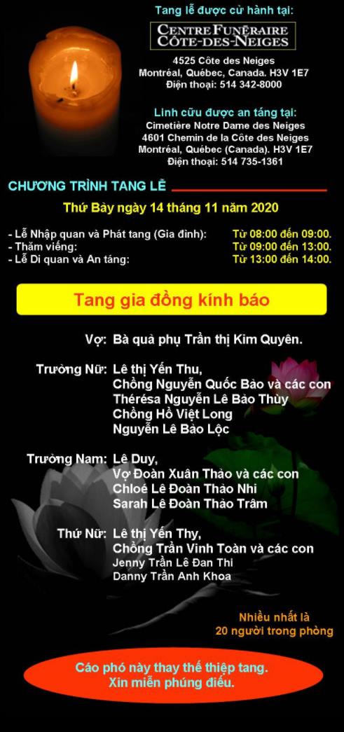 đã qua đời vào ngày 9 tháng 11 năm 2020 tại Canada