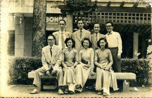 Những anh chị em và dâu rể nhà Thăng Long. Hàng đứng, từ trái sang: Hoài Trung (Phạm Đình Viêm), Hoài Bắc (Phạm Đình Chương), Phạm Đình Sỹ. Hàng ngồi: Phạm Duy, Thái Hằng, Kiều Hạnh, Thái Thanh