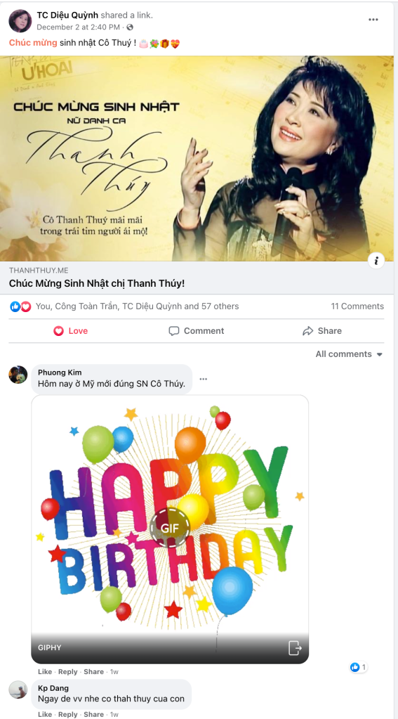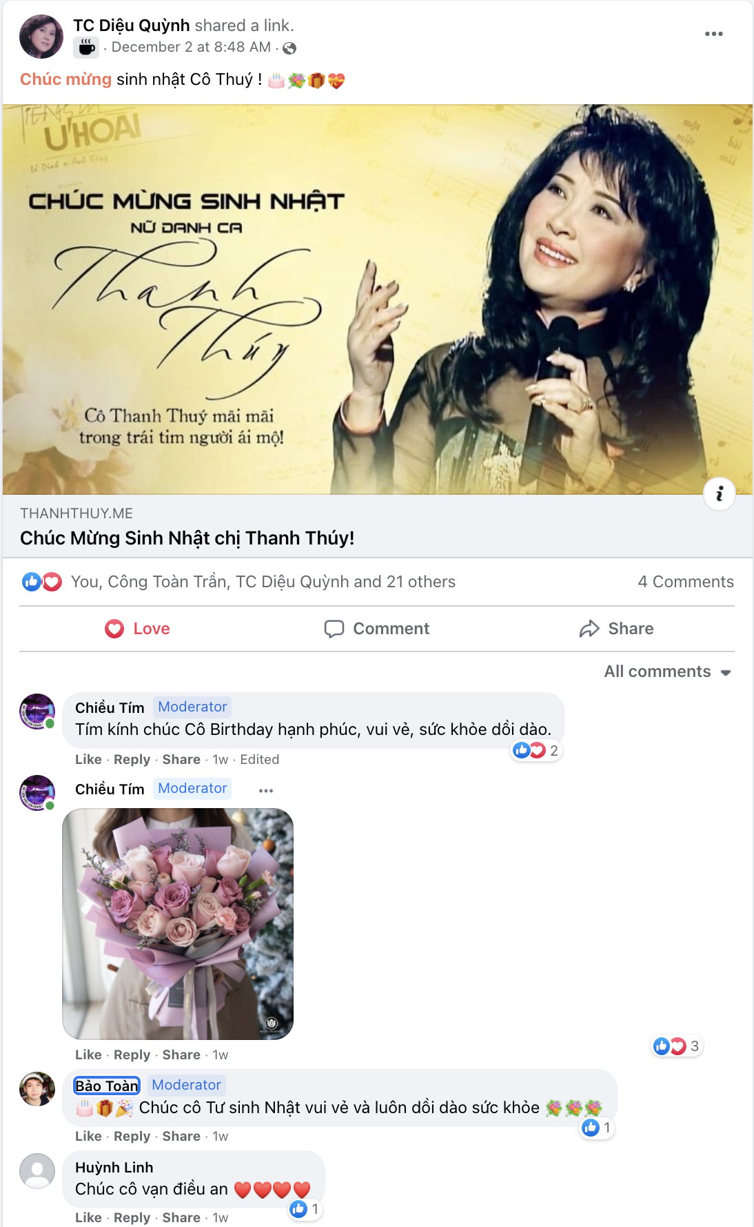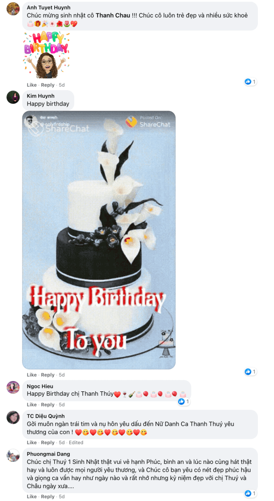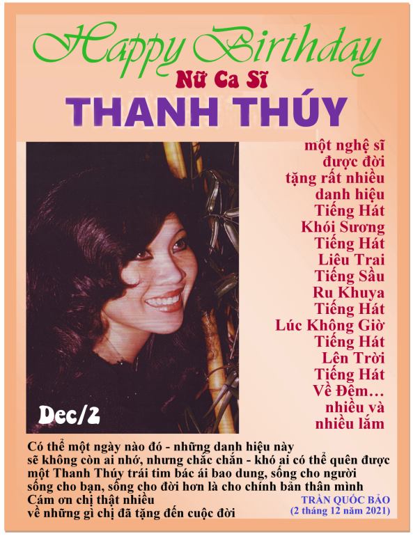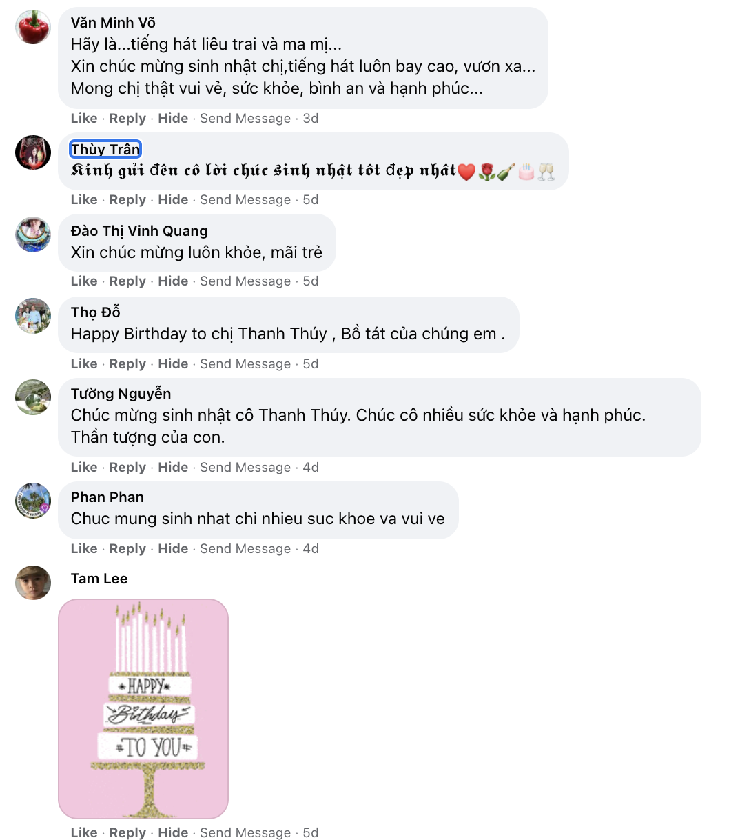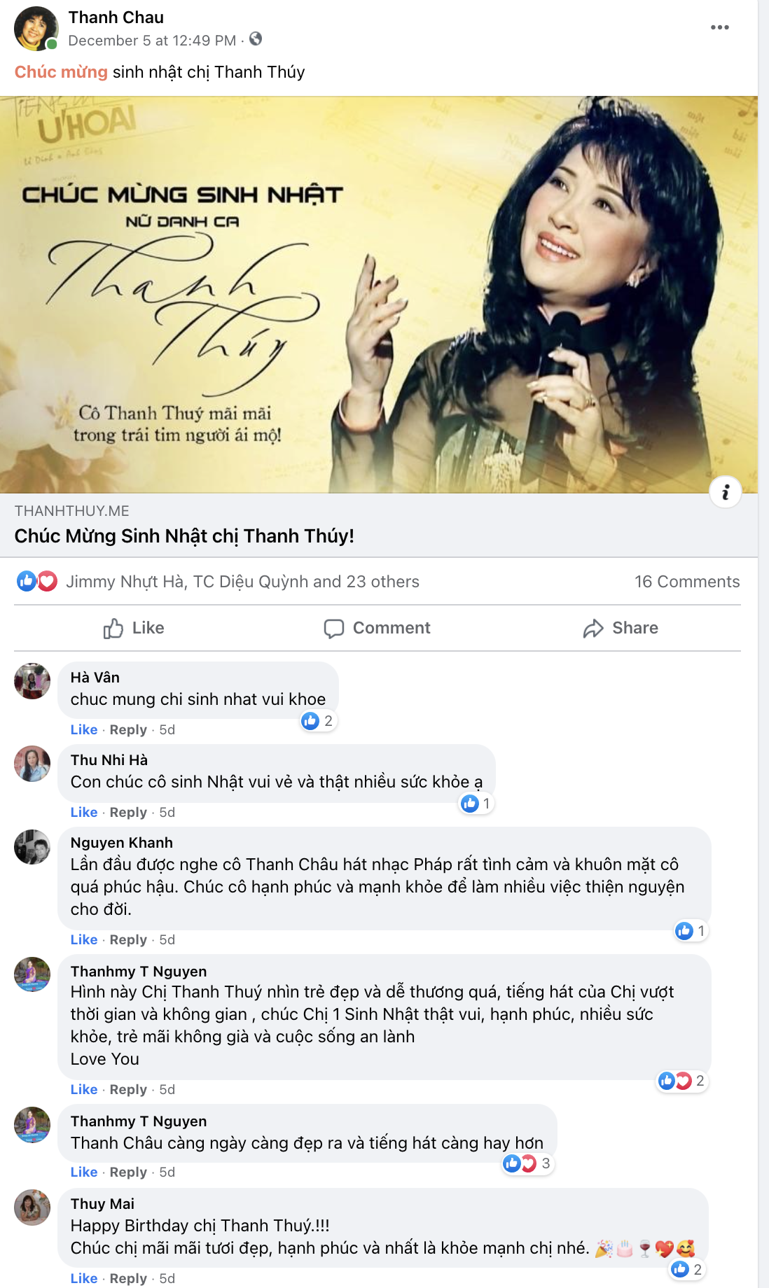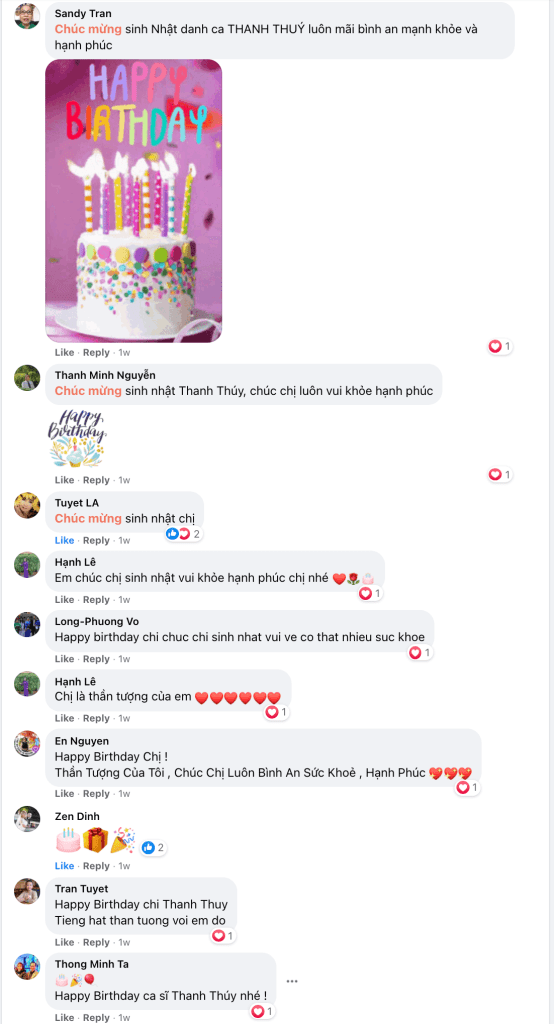 Thanh Thúy xin chân thành cảm tạ tất cả những lời chúc mừng sinh nhật chân tình, thân thương, từ khán thính giả, anh chị em nghệ sĩ, cùng thân nhân và bạn hữu!