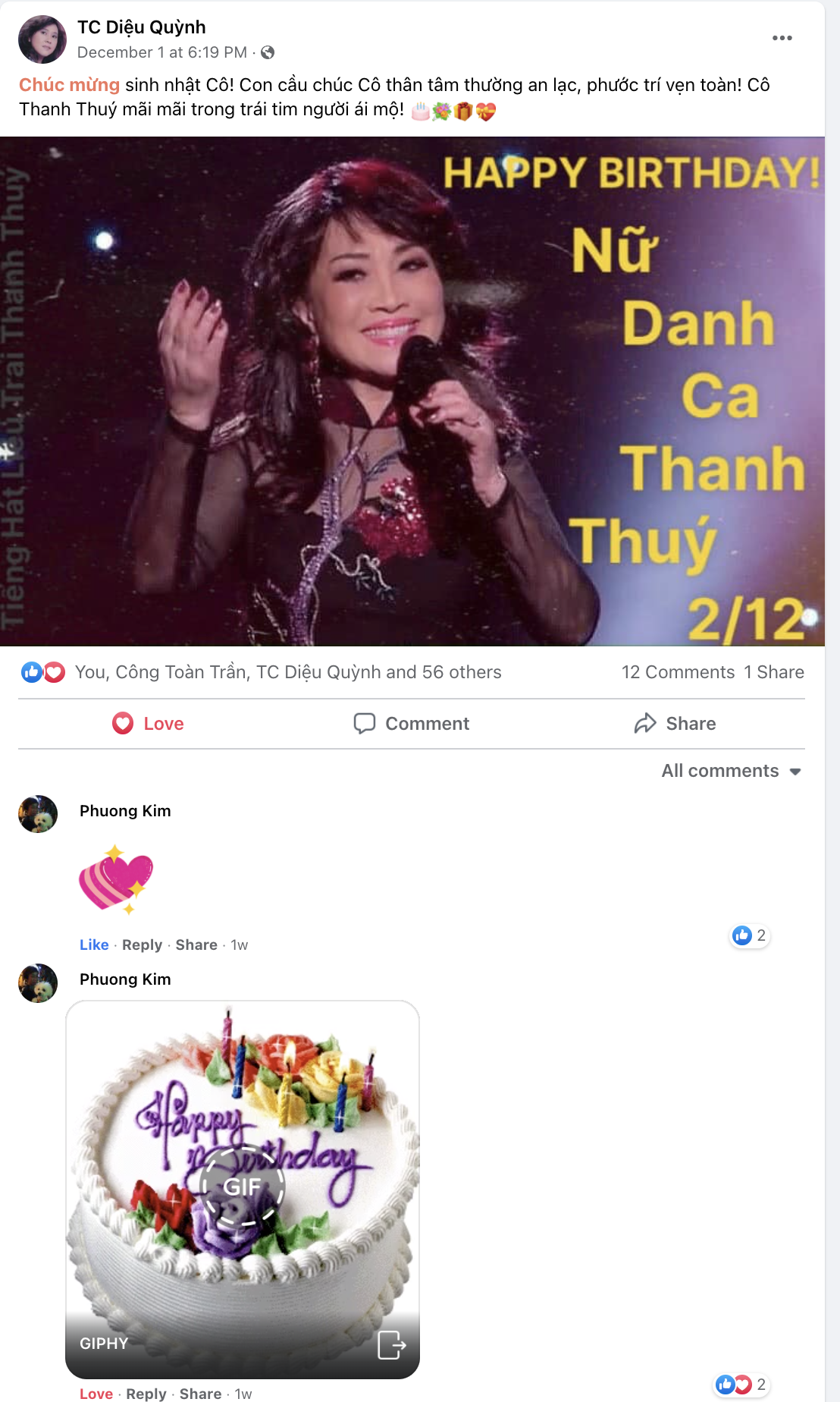Thanh Thúy đã có được một ngày vui, ấm áp khi đón nhận được bao nhiêu là tình yêu thương từ quí vị!