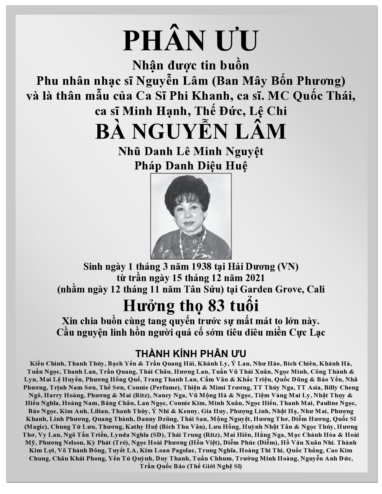 Phu nhân nhạc sĩ Nguyễn Lâm (Ban Mây Bốn Phương)