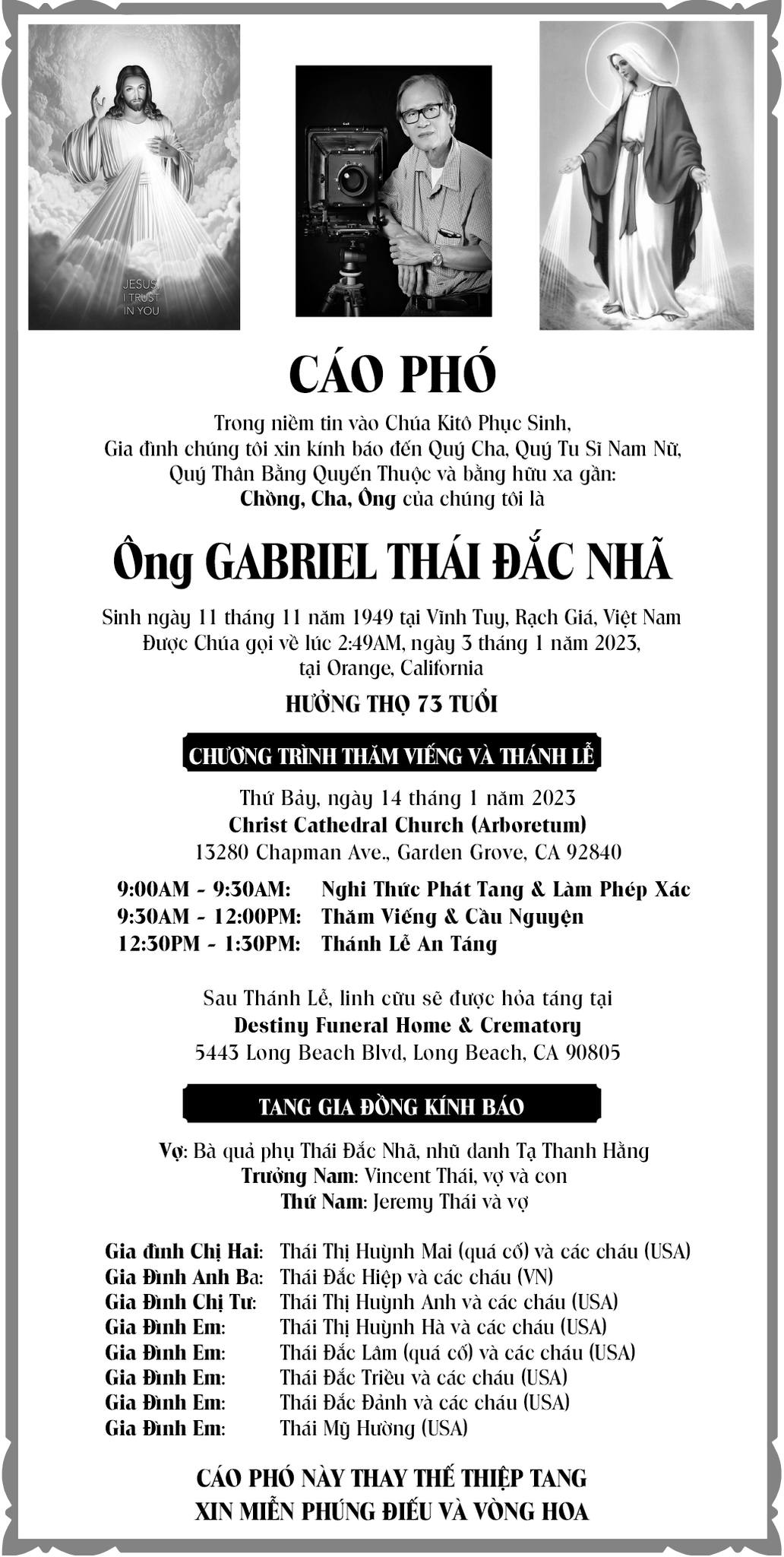 Nguyện cầu hương linh Anh Thái Đắc Nhã sớm an nghỉ nơi cõi vĩnh hằng.