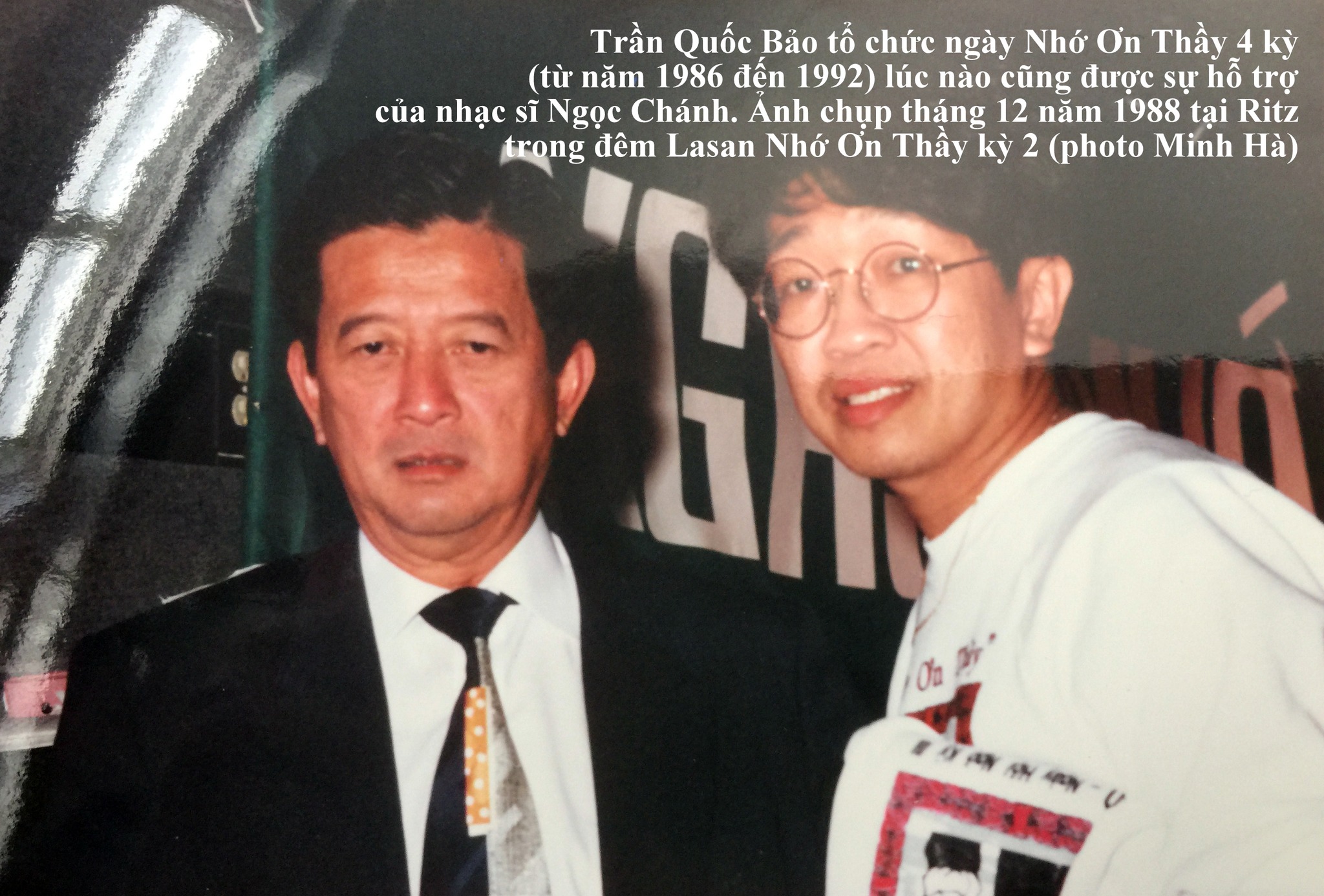 Người viết cũng một thời khoác áo Lasan, đầu tiên là Lasan Mossard, sau về Saigon năm 1975, có một năm học tại Lasan Taberd, đến khi trường bị giải thể, sang học 2 năm cuối tại Lasan Đức Minh. Khi sang bên Mỹ gặp nhạc sĩ Ngọc Chánh, ngoài tình cảm nghệ sĩ, còn là tình huynh đệ cùng trường. Khi người viết đứng ra tổ chức 4 chương trình Lasan Hội Ngộ: Nhớ Ơn Thầy bắt đầu từ kỳ 1 (1986), kỳ 2 (1988), kỳ 3 (1990) và kỳ 4 (1992), những lần tổ chức này, nhạc sĩ Ngọc Chánh đều tạo điều kiện cho mượn vũ trường Ritz làm nơi gây quỹ .