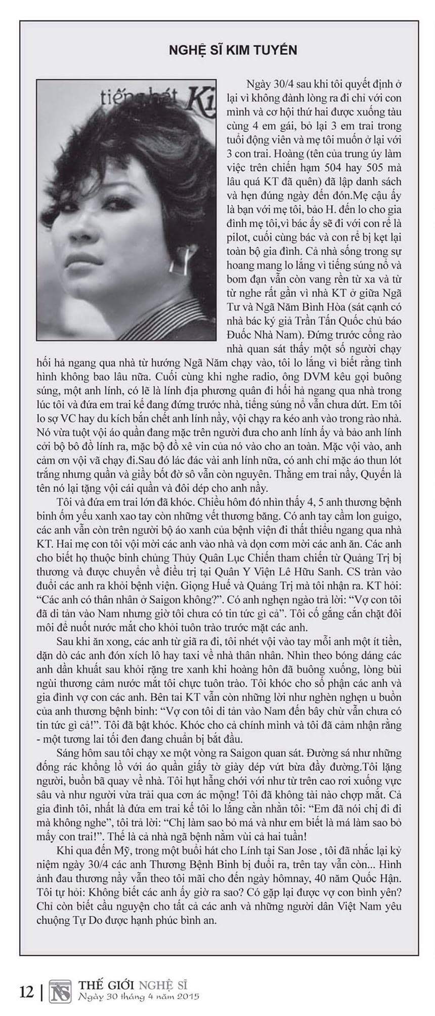 Kỷ niệm Tháng Tư Đen 30/4/75 …. (Kim Tuyến)