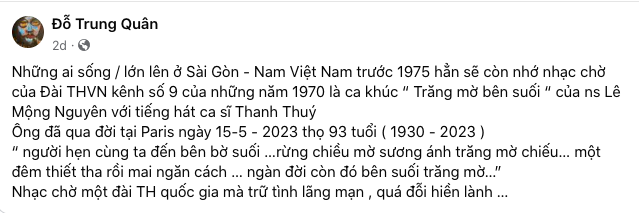 One comment on “Trăng Mờ Bên Suối (Lê Mộng Nguyên), Thanh Thúy ca