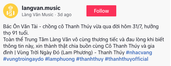 từ Page “Thanh Thúy – Tiếng Ca U Hoài” facebook
