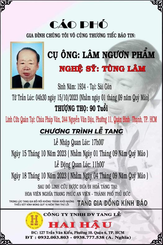 vừa từ trần ngày 15 tháng 10 năm 2023 tại Saigon