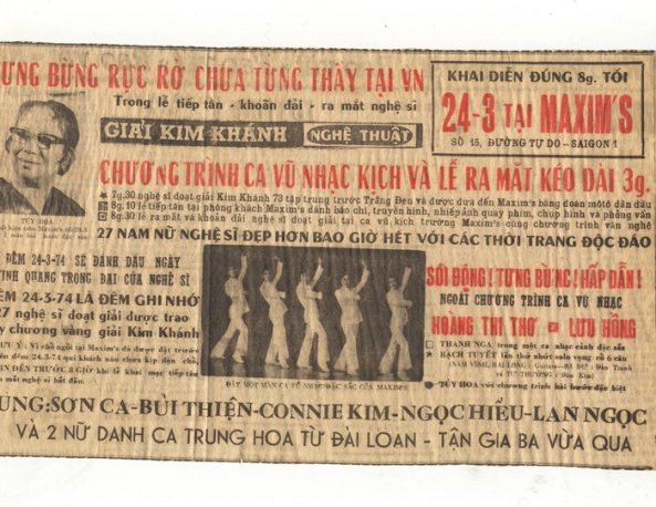Mr Bruce Trần (Chủ nhân đài VHN) đang nhìn ảnh Ngọc Hiếu trên bìa tờ báo Phụ Nữ Diễn Đàn phát hành tại Sàigòn năm 1967