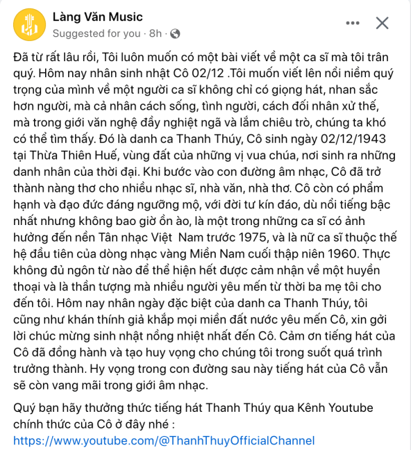Thanh Thúy cũng xin cảm tạ tất cả những lời chúc thân thương cho ngày sinh nhật năm nay”.