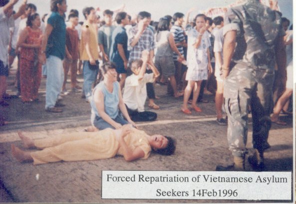 Vietnamese boatpeople stage a rooftop protest at the Whitehead detention centre 11 March as 102 asylum seekers were forced home today. The protest started only hours after the departure of UN Commissioner for Refugees, Sadako Ogata left the territory following a two-day visit. AFP PHOTO / AFP PHOTO / APPLE DAILY / STR
