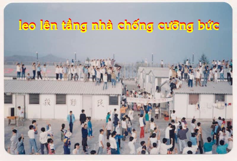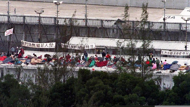 Vietnamese boatpeople stage a rooftop protest at the Whitehead detention centre 11 March as 102 asylum seekers were forced home today. The protest started only hours after the departure of UN Commissioner for Refugees, Sadako Ogata left the territory following a two-day visit. AFP PHOTO / AFP PHOTO / APPLE DAILY / STR