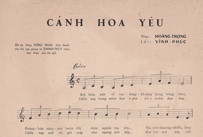 Cánh hoa yêu (nhạc: Hoàng Trọng, lời: Vĩnh Phúc), qua tiếng hát Thanh Thúy