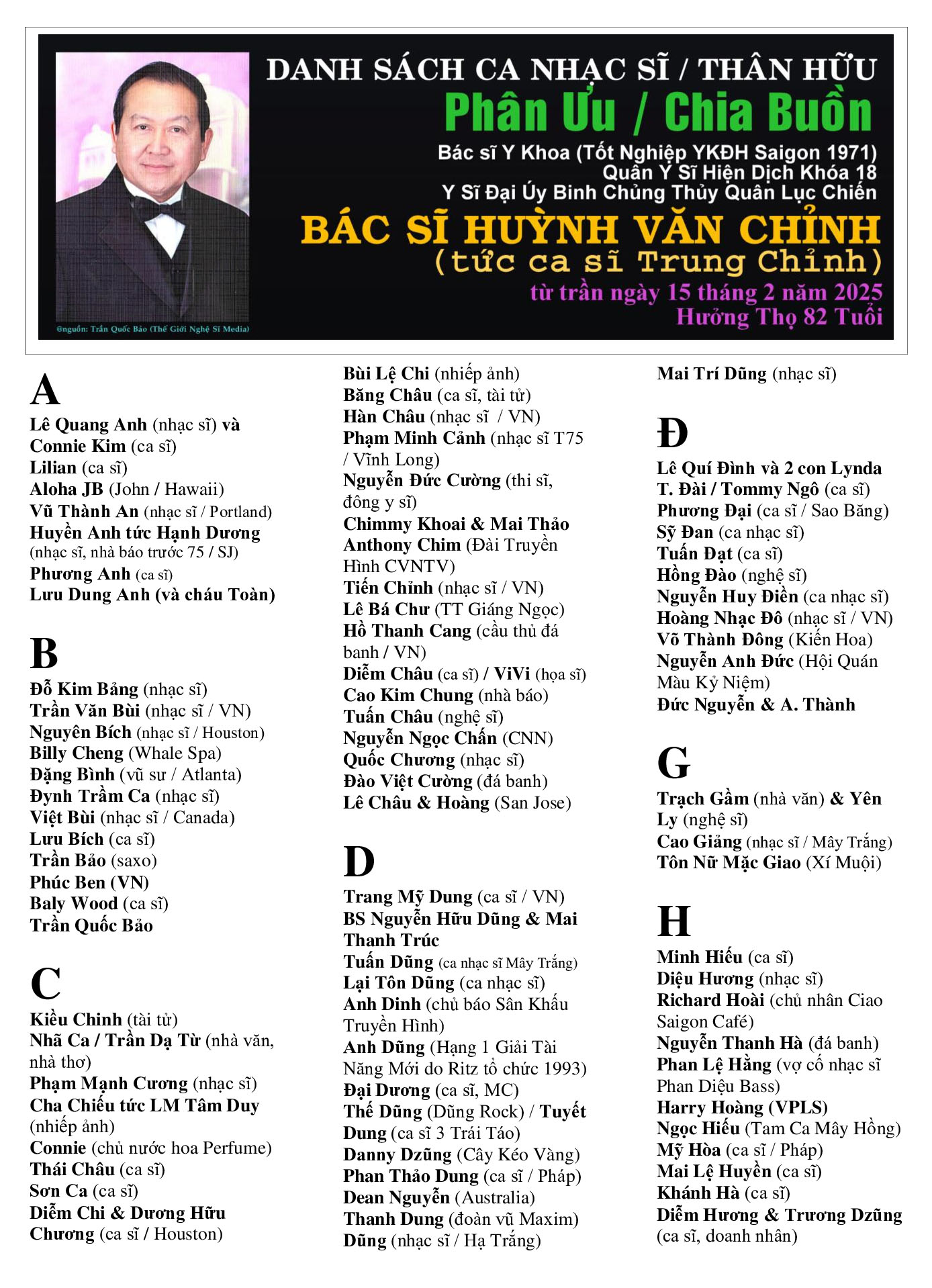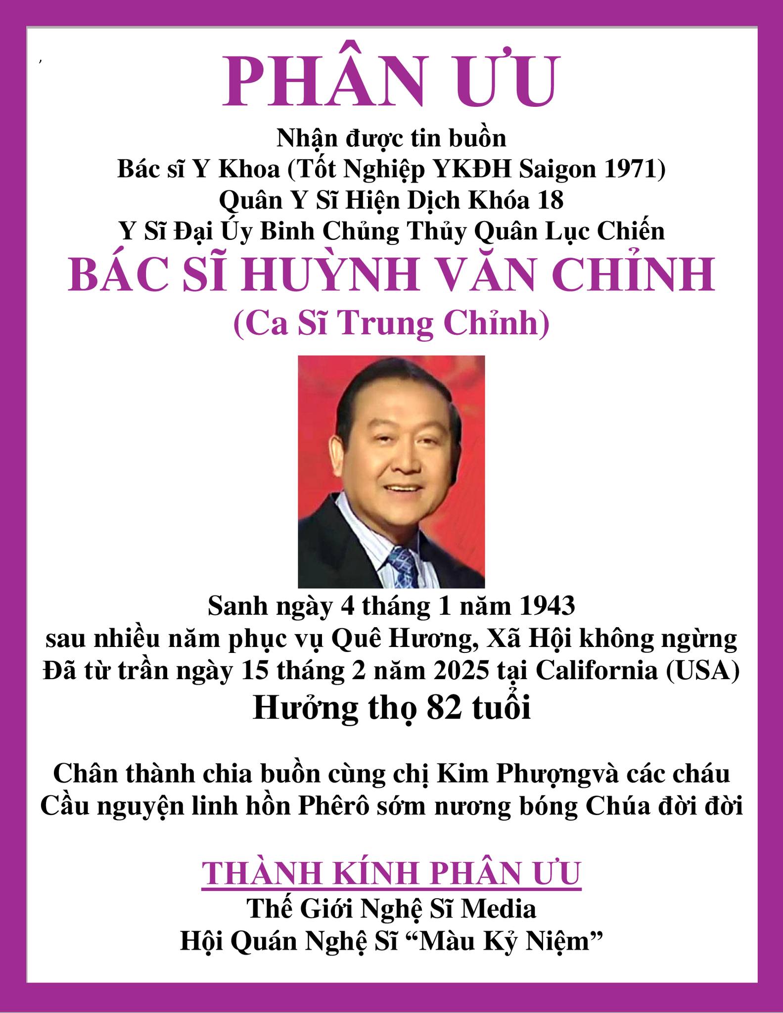 vừa từ trần vào ngày 15 tháng 2 năm 2025 tại California, Hoa Kỳ