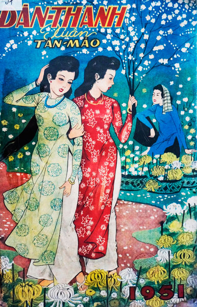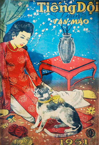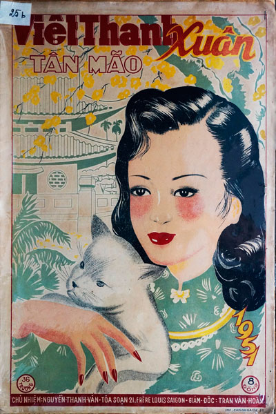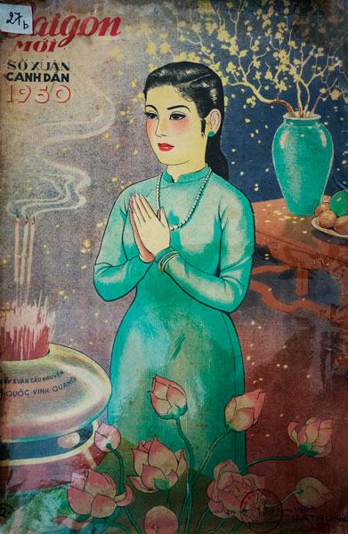 Bìa Báo Xuân Sài Gòn mới này của Thái Văn Ngôn, họa sĩ chuyên vẽ bìa báo Xuân và tạo mẫu sơn mài hãng Thành Lễ nổi tiếng trước đây (sưu tập Phạm Công Luận)