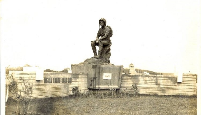 Trên không gian rộng thoáng, từ mọi hướng, người ta có thể nhìn thấy bức tượng cao, nổi bật trên nền trời xanh. Ðó là người lính từ chiến trường về thăm mộ đồng đội, quân phục, ba-lô lấm bụi, súng trường gác trên hai đùi, lưỡi lê ngang hông, dây quai nón sắt buông thõng như sợi buồn rơi vào cõi vô định. Anh ngồi thẫn thờ, đôi mắt buồn nhìn xa xăm, thương tiếc cho người bạn vừa nằm xuống. Bức tượng trong bối cảnh đó trở nên có hồn hơn và nhiều chuyện linh thiêng của bức tượng đã không ngớt lưu truyền trong dân chúng lúc đó.