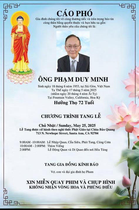 vừa từ trần vào ngày 17 tháng 5 năm 2025 tại California, Hoa Kỳ