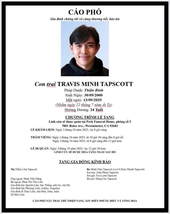 vừa mất vào ngày 13 tháng 9 năm 2025 tại Nam California, Hoa Kỳ