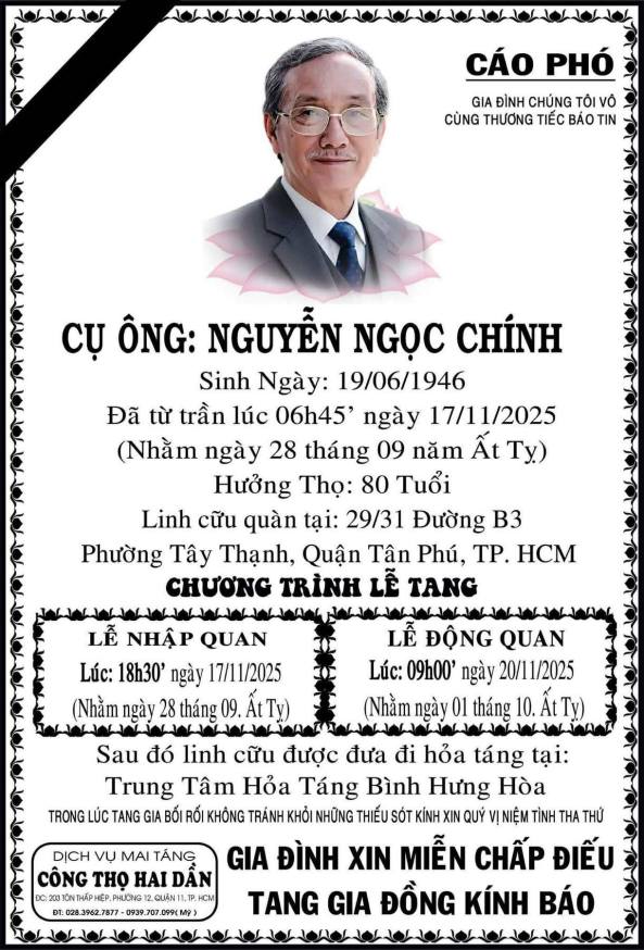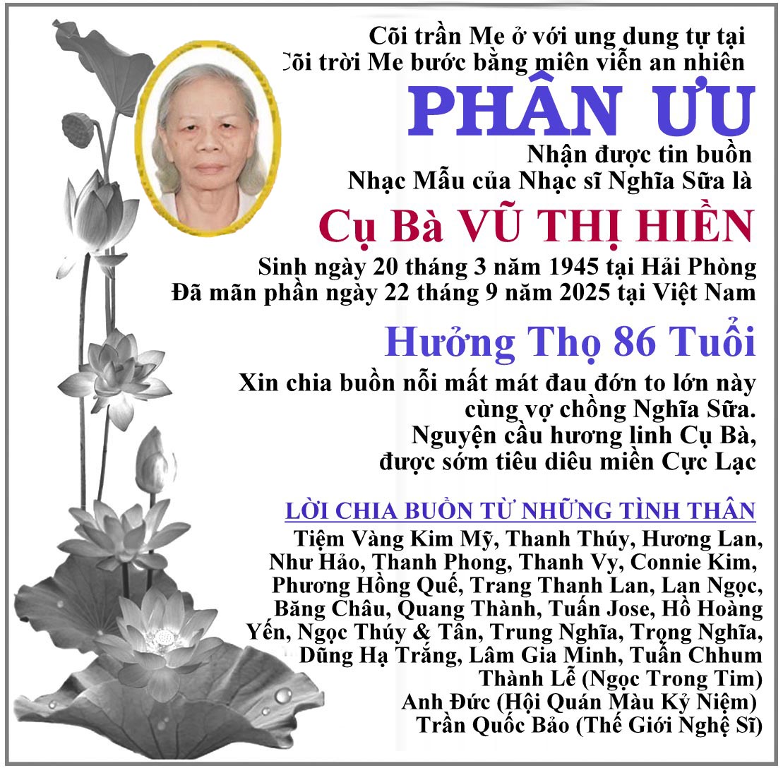 Ca sĩ Hoàng Hạc, vừa qua đời tại Đà Lạt, thọ 81 tuổi. Xin chia buồn cùng nhạc sĩ Hoàng Trọng Thụy, gia đình cố Danh Ca Tâm Vấn cùng toàn thể tang quyến, cầu cho linh hồn anh được yên nghỉ nơi chốn vĩnh hằng!