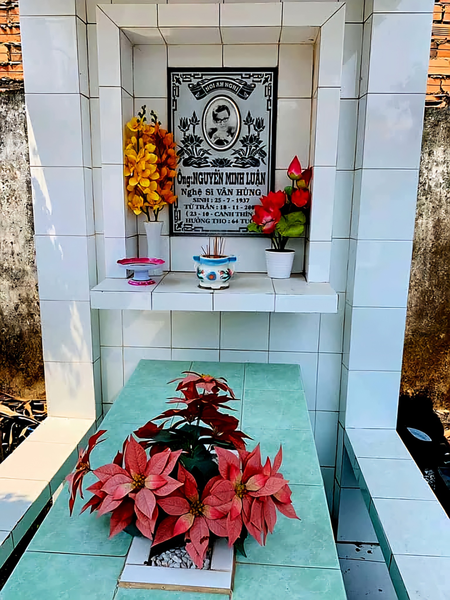 Bia mộ kịch sĩ Vân Hùng trong khuôn viên Nhựt Quang tự (nghĩa trang chùa nghệ sĩ) ở Gò-Vấp
