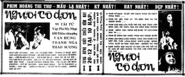 Mẫu quảng cáo phim “Người cô đơn” với Vân Hùng và Thanh Nga trên các tờ nhựt báo ở Sài-Gòn, 1972